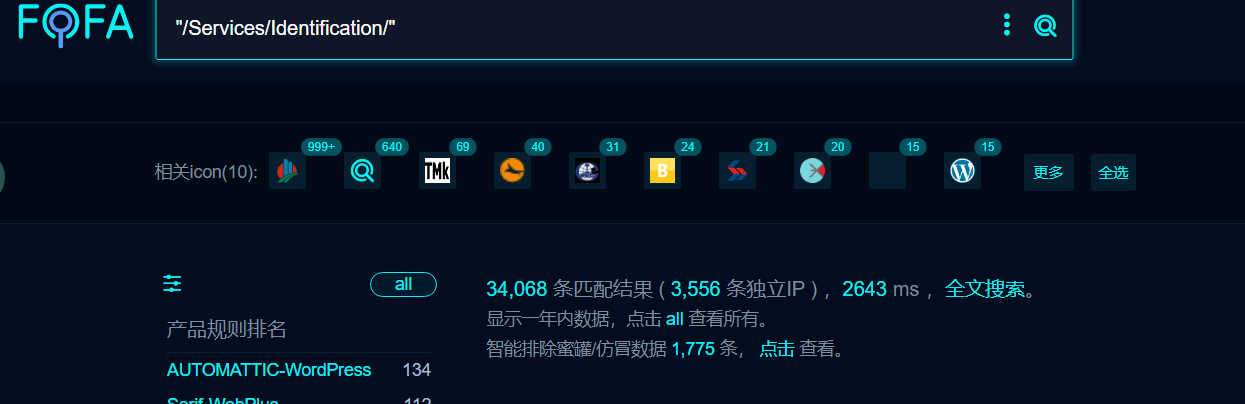 1.fofa "/Services/Identification/"  2. 安全隐患URL,泄露用户名和token信息